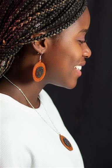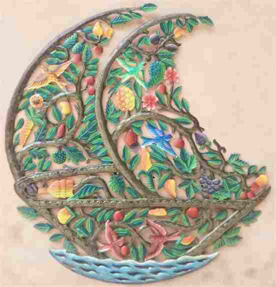 Haiti's Hand Print showcases creativity by recycling materials into stunning art. 55-gallon oil drums are transformed into wall decor and Christmas ornaments, while unique jewelry is crafted from recycled cereal boxes, coconut shells, cow bones, and horns. All proceeds support children’s education in Haiti through Teach Haiti, reflecting both cultural heritage and sustainability.Product Images: