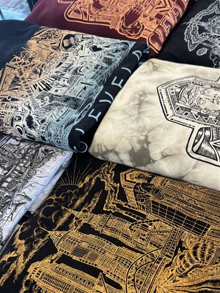I make freehand ink drawings about Cleveland architecture, industry, culture and history. I am also a screen printer. I print my work by hand on shirts, paper and wood panels.Product Images: