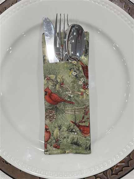 Here at Festive Place Settings we have been specializing in making Silverware Stockings for the Holiday table for over 20 years! We have Christmas, Thanksgiving and Easter stockings in a large variety of classical and whimsical fabrics. In addition, we are now offering a selection of rectangular silverware holders in colors and patterns that can be used year-round, not just for the holidays. These are great for buffet dinners, picnics and backyard barbecues.We also have a large selection of holiday table runners in lengths from 36” to 85” to fit anything from coffee tables to large dining tables. Our gift card holders are a very fun and unique gift to include with all of your gift card gifting. We also have a selection of small wallets with two compartments and a snap closure to hold multiple gift cards.